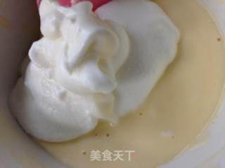 蛋白分2次加入蛋黄面糊,目的是每次让面糊充分翻拌均匀。