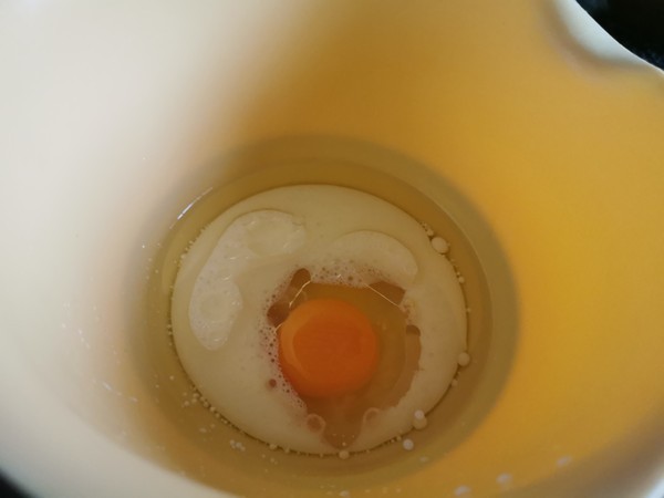 鸡蛋,玉米油细砂糖,牛奶混合均匀,乳化的状态
