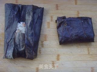 把糯米饭在荷叶中压实
