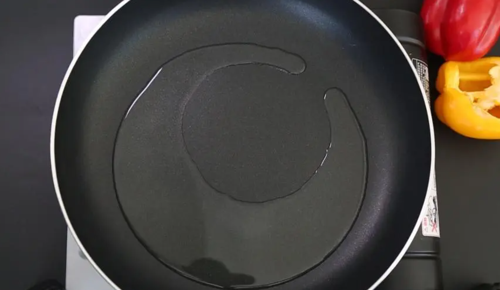 将少许橄榄油倒入平底锅内