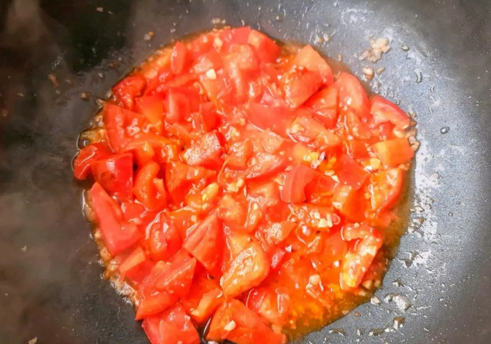 炒出番茄汁,加入清水煮开