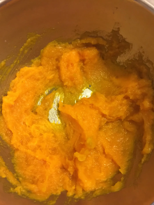 加入咸蛋黄,与南瓜混合一起压成泥