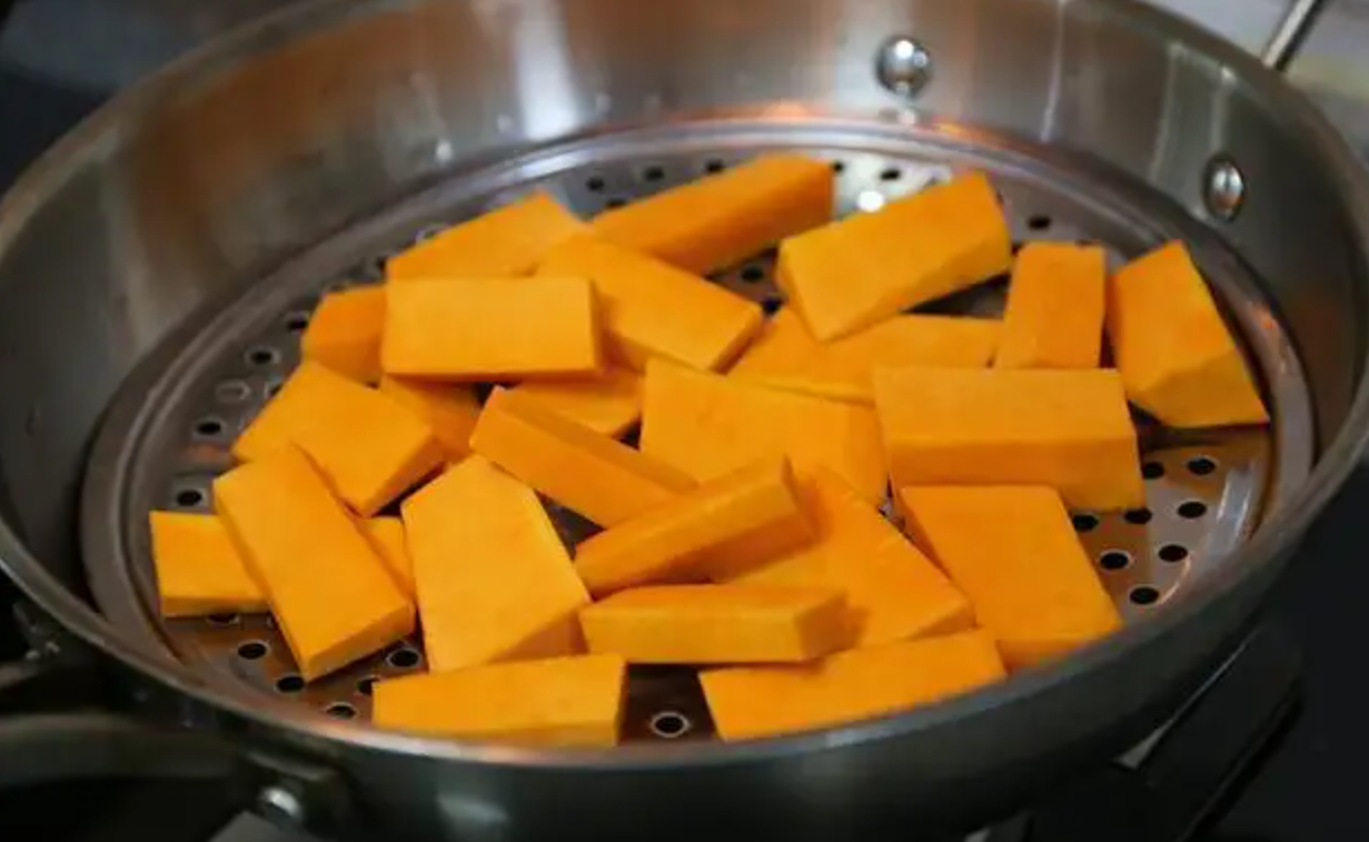 将南瓜切块蒸熟