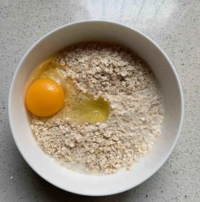 将鸡蛋、牛奶和燕麦混合搅拌均匀