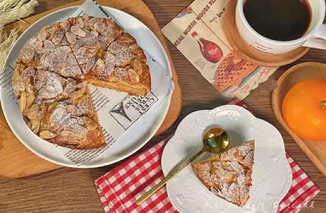 依次将红薯片和苹果片按从下到上的顺序重复铺层,再撒上杏仁铺顶放入烤箱烤制,完成!!!