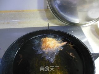 油中温下入虾球。