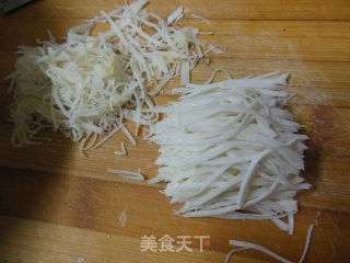 擀成面皮切成细丝条状。