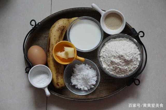 将香蕉捣成泥后放入面包机内桶
