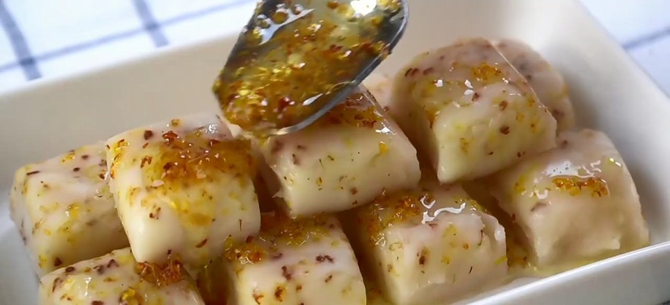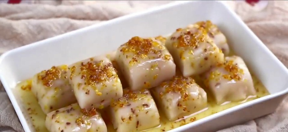 再浇上一些糖桂花,藕粉桂花糕就完成了