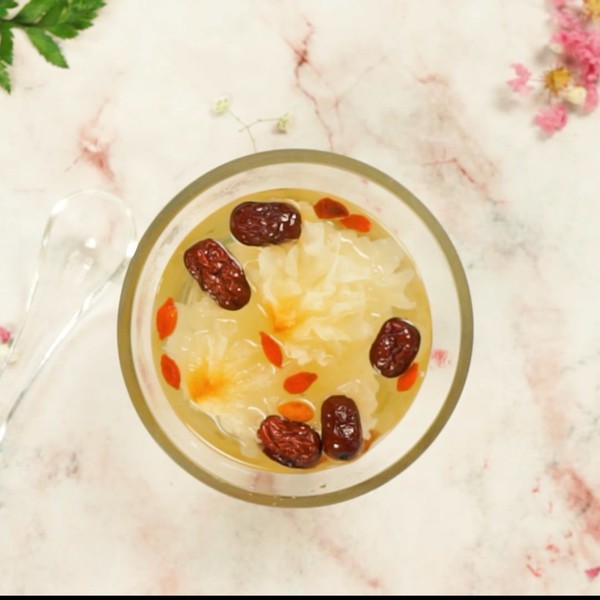 3、放入锅中并加入1L冷水、红枣20g、枸杞10g、冰糖15