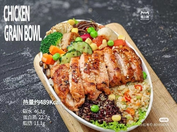 『岩烤鸡腿排谷物碗』