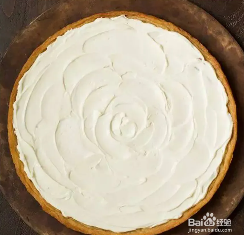 步骤三、使用电动搅拌器,用糖和香草搅打奶油干酪,直到轻和蓬松。把奶油抹在顶端。
