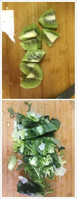 将洗好的蔬菜和处理好的猕猴桃切块!