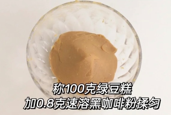 称100克绿豆糕,加0.8克速溶咖啡粉揉匀