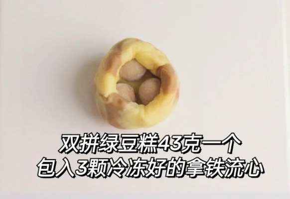 双拼绿豆糕43克一个,包入3颗冷冻好的拿铁流心