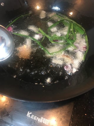加入适量的蚝油,生抽,老抽,鸡精,味精,盐,冰糖,待煮开。
