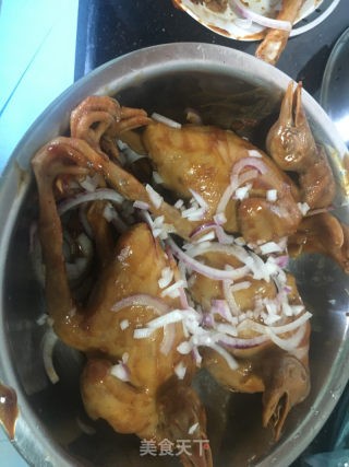 涂抹在鸽子表面和肚子里,腌制半小时待用。