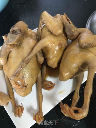 水开后,放入鸽子,大火卤8-10分钟,然后转小火卤20分钟,关火,待浸泡半小时至一小时(待用)。