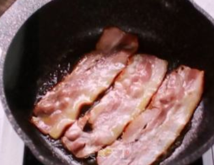 下培根小火煎熟取出。