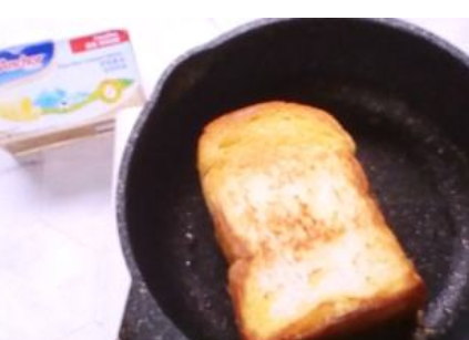 放入厚吐司,小火煎至两面金黄,鸡蛋加少许盐和牛奶打散。