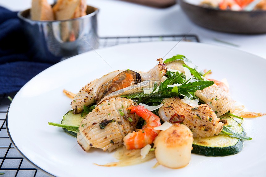 『虾肉,当季蔬菜,青口,煎鱼肉』