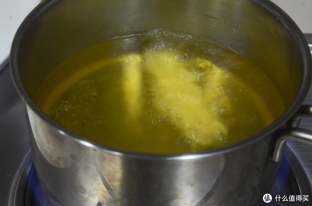 接下来小奶锅准备至少半锅油,烧至六成熟。