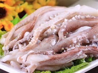 将面粉与鱿鱼、墨鱼肉混合制成外皮
