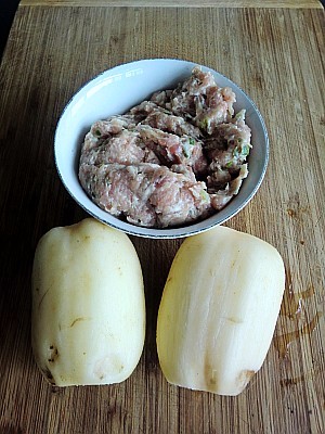 莲藕去皮洗净,肉馅准备好。