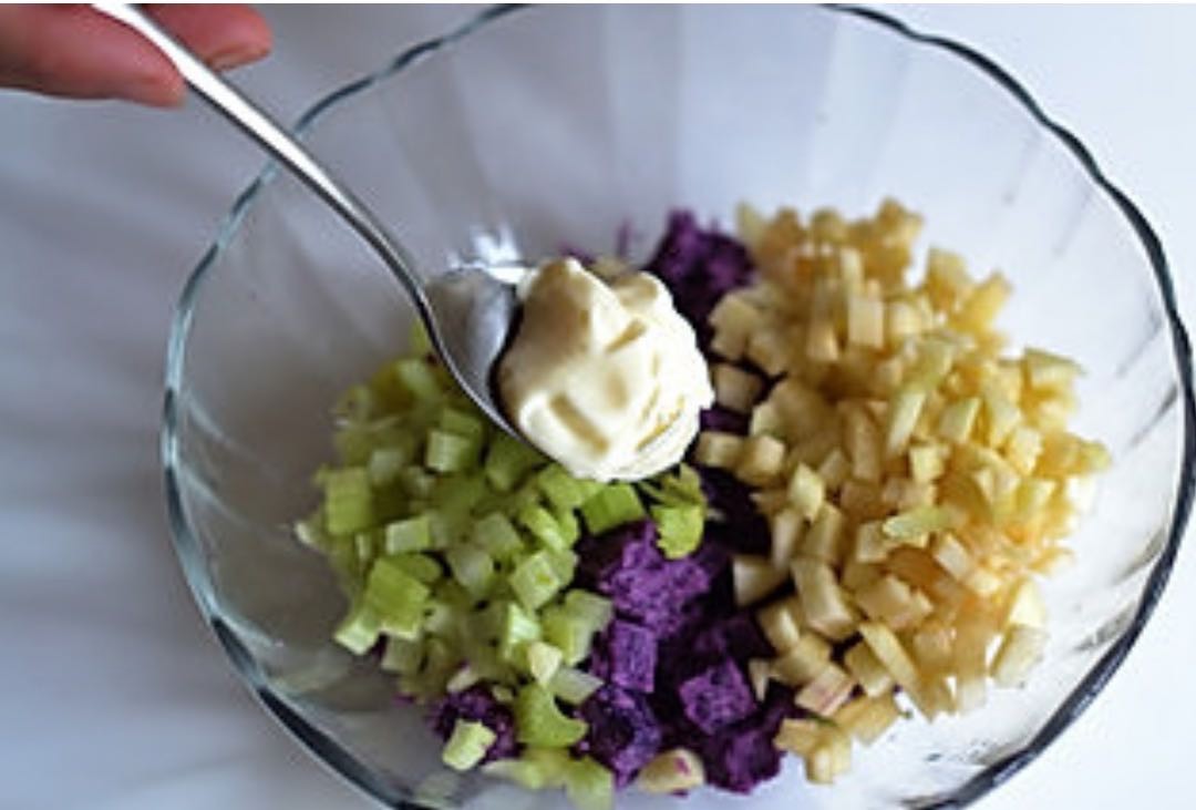 将上述切好的材料搅拌,摆盘,然后在上面淋一点柠檬汁,装盘