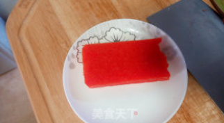 挤上沙拉酱,用紫菜包饭的方法卷起来,卷成方形,均匀的粘上鱼子酱,,切块即可,