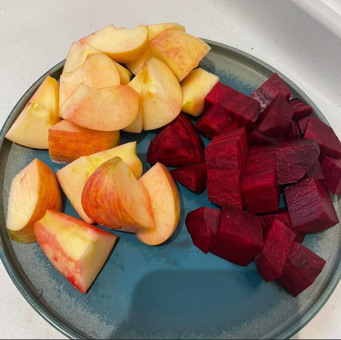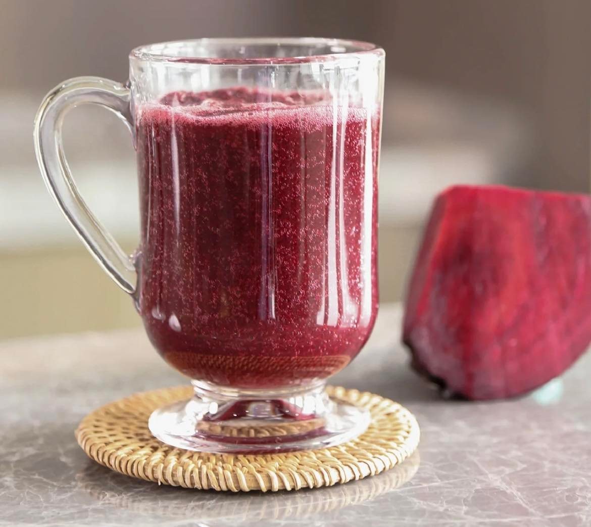 【功效】甜菜根和苹果的膳食纤维都非常高,果蔬汁成品比较厚重,喜欢口感较稀的,可以多家一些水。如果想要口感更好,水可以用椰子水替代。长期适量食用甜菜根,可以提升身体耐力,降低血压