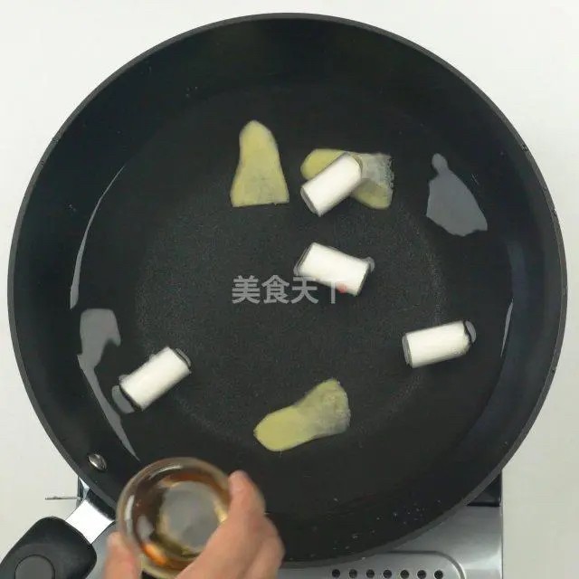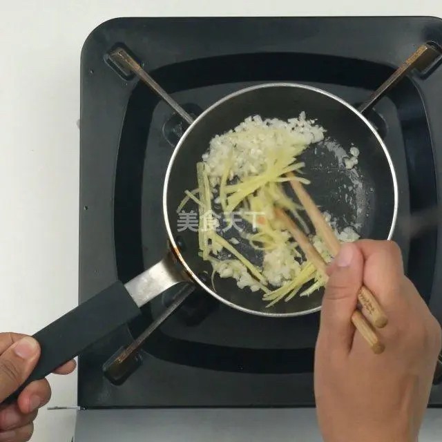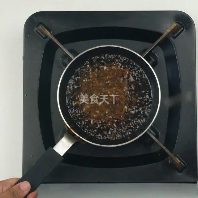倒入蒜末、姜丝翻炒。加入白砂糖、生抽拌匀,加热至糖溶化。