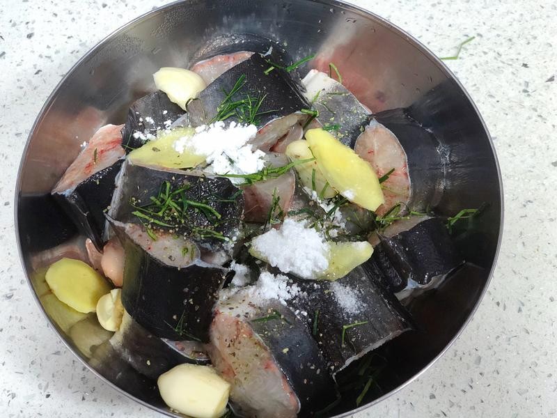 先把鳝洗干净,把所有东西放进去(除了配料)青柠切片,2~3片挤出柠檬汁去腥,腌制25分钟,这里我并没有放酱油,因为放了酱油,鳝片煎的时候会容易变焦
