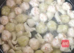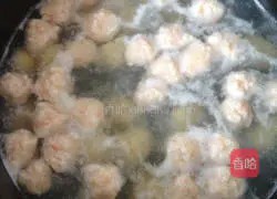 制作虾丸:将虾茸捏成小球状,下入沸水中煮至浮起,捞出备用。