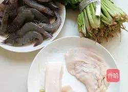 处理虾仁:鲜虾仁洗净,用牙签将虾仁背部的虾线挑出去除干净。将鲜虾仁倒入搅拌机中,混合搅打成虾茸。在虾茸中放入干淀粉、绍酒、盐(1/2茶匙,3克)。
