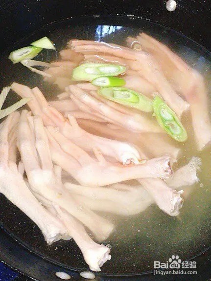 准备鹅掌:将鹅掌剪去指甲,清洗干净,去除趾尖和脚垫,然后放入沸水中煮约五分钟左右。