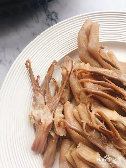 煮制:将煮好的鹅掌捞出,放入凉水中过凉,然后剔去骨和筋,保留整形。