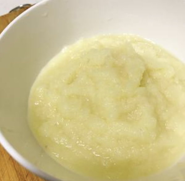 洋葱剥去外皮切丝。生姜去皮切片放入料理机。搅打成泥状倒出备用。