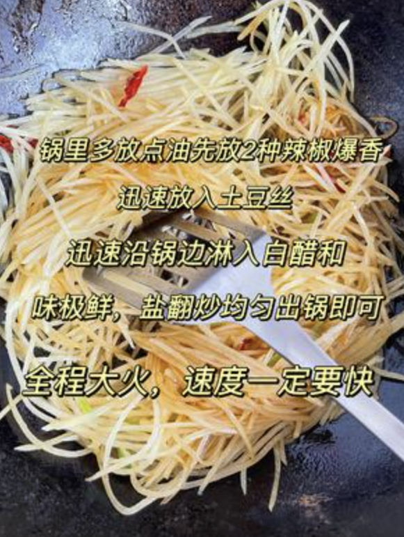 热锅凉油下入2种辣椒炒香(不要炒糊了)大火加入土豆丝后沿锅边淋入少许白醋,味极鲜酱油,盐翻炒均匀即可出锅~