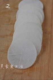 萝卜不要去皮,带皮才会爽脆,洗刷干净切成薄片
