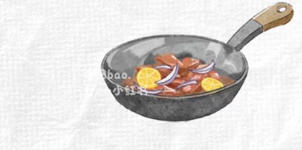 加入切好的蒜片和洋葱炒香。再加入半勺白糖、小米辣、柠檬,翻炒均匀