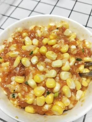 将玉米粒放到肉馅里面搅拌均匀