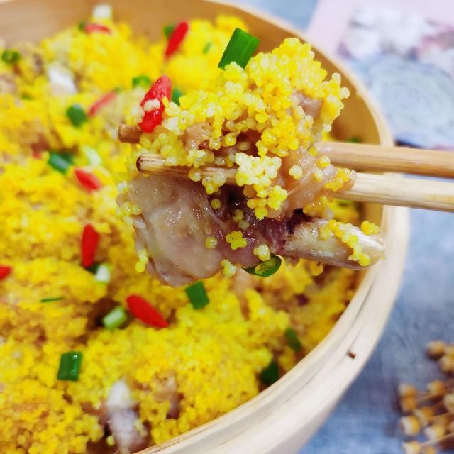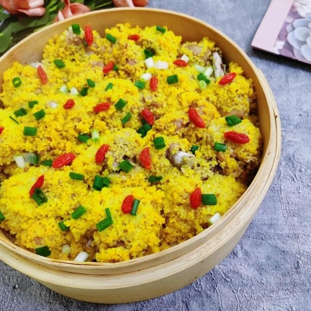 放入蒸笼怒,蒸汽上来后文火蒸两个半小时,软烂脱骨为止,最后添加泡好水的枸杞,再蒸两分钟即可出锅。