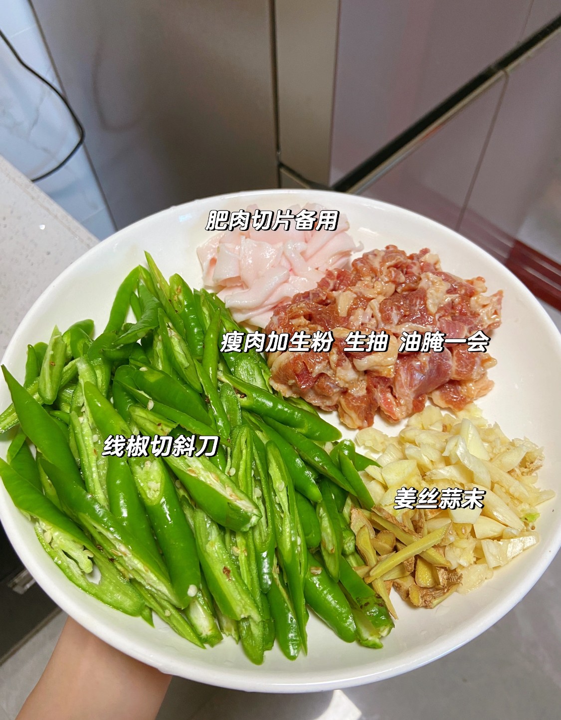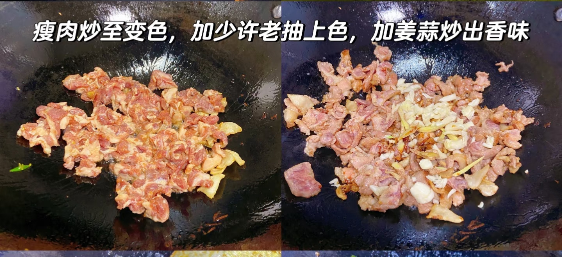 『青椒,肥瘦肉,蒜末』