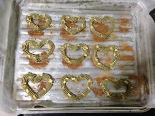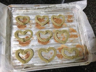 将面糊在烤盘上挤出心形