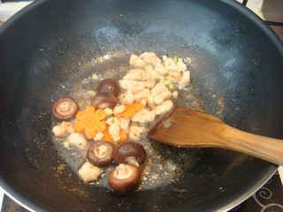 依次放入葱花、花椒面、生抽、香菇、胡萝卜煸炒