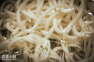乌冬面煮好放入冰水中。