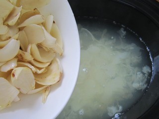 煮两小时左右后,下入百合。