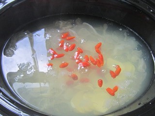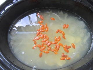所有原料都软烂后,下入枸杞。