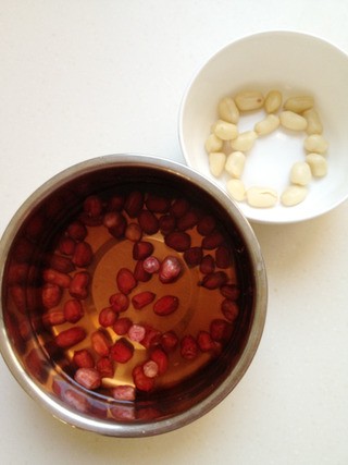 1、茄条蒸的火轻些,为了保持形状。 2、花生红衣用开水烫后,不必太长时间即可轻松去除。 3、加味极鲜是个人习惯,用生抽也可!